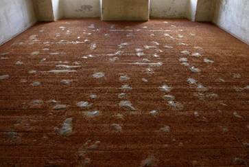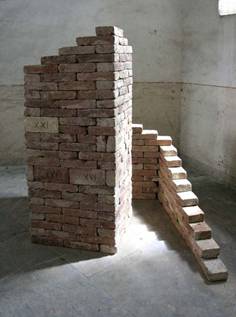 Jeho instalace z cihel, podobně jako instalace Kláry Mičíkové na chodbě kláštera,