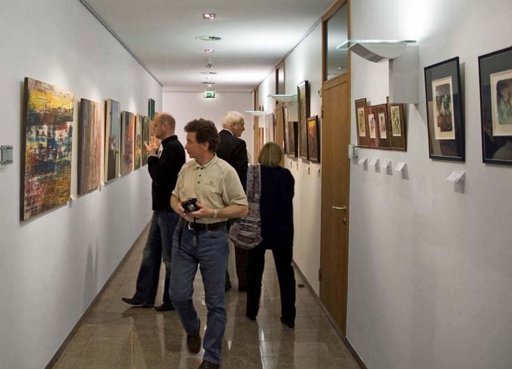 Instalace obrazů v chodbách administrativního traktu